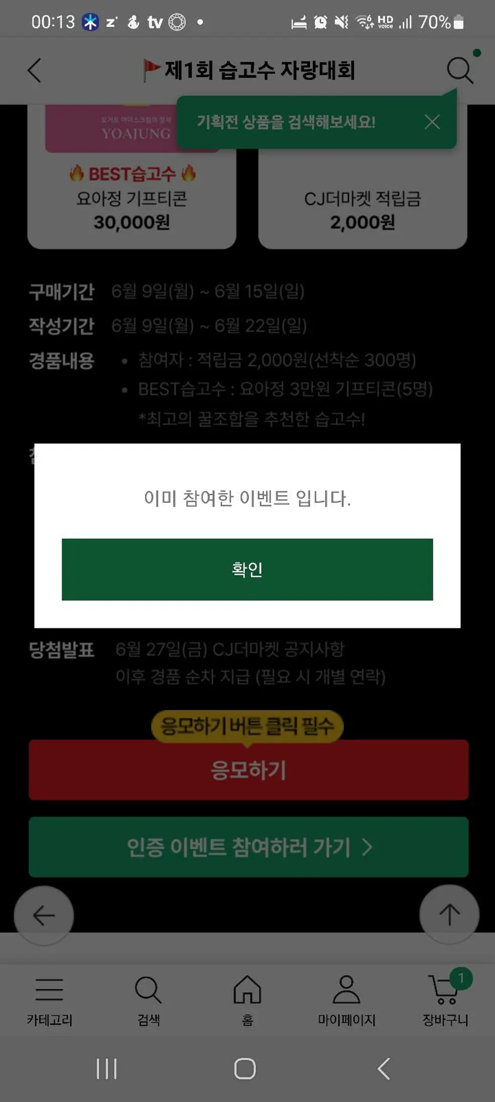 CJ ONE 포인트 적립
