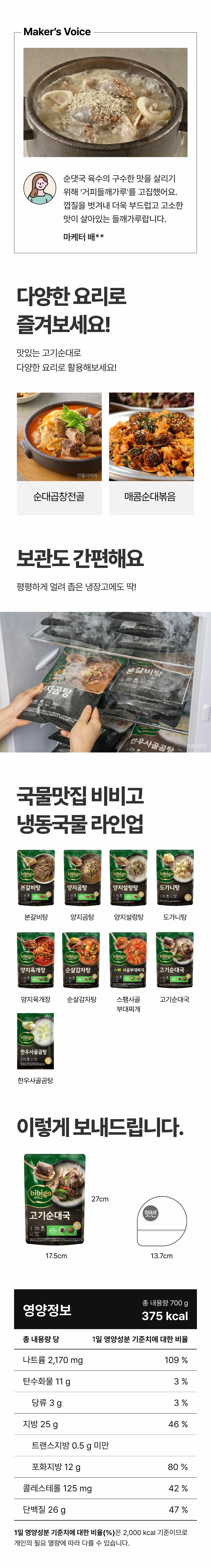 관련 기획전상품 정보 고시배송안내취소/교환/반품 안내상품 Q&A상품 관련 궁금하신 사항이 있으면 궁금하신 점을 문의해 주세요.고객님의 질문에 정성껏 빠르게 답변해 드리겠습니다. 작성해주신 문의내역 및 답변은 마이페이지활동정보1:1 문의내역 메뉴에서 확인 가능합니다. 문의하기카테고리국물/메인요리국/탕/찌개